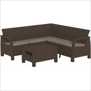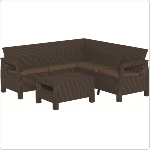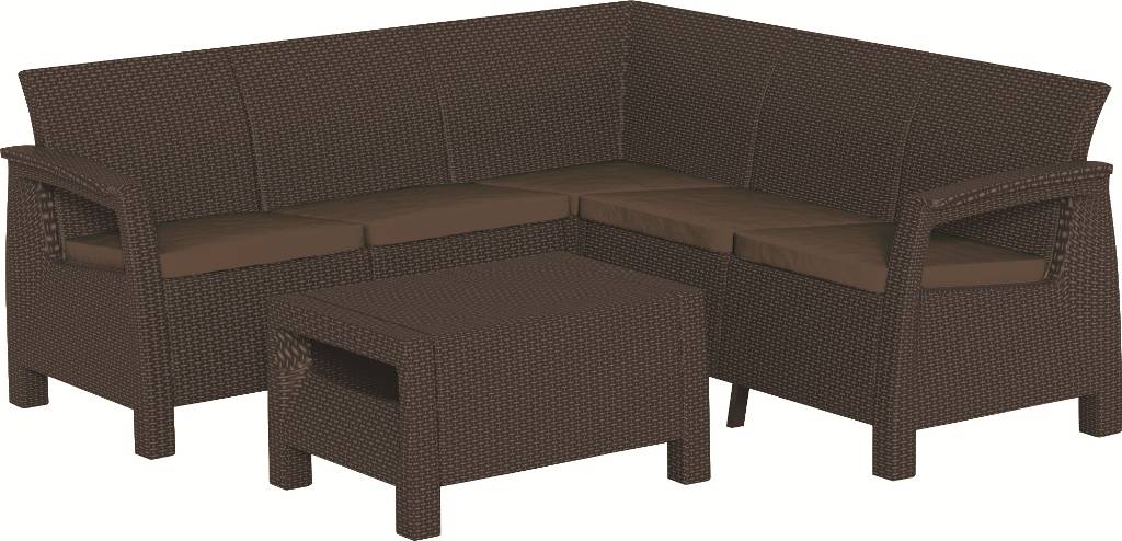 Угловой комплект мебели из пластика под искусственный ротанг. Включает в себя вместительный угловой диван с подушками и удобный столик. Комплект мебели Keter Corfu Relax - новое продолжение супер популярной линейки Корфу. Теперь у вас появились новые возможности комбинирования мебели для оформления террасы, беседки или веранды. Комплект мебели не только выглядит очень стильно и компактно, он еще и очень комфортабельный.