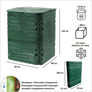 Материал: термолен (материал премиум класса, долговечный, устойчивый к ультрафиолетовым лучам, благодаря специальной структуре ускоряет созревание компоста)
