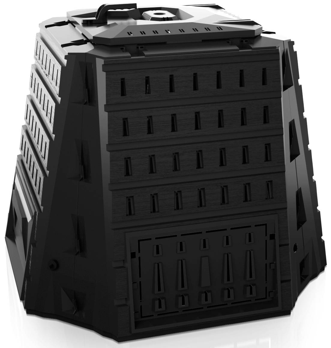 удобный доступ к готовому компосту через нижнее отверстие с откидной заслонкой