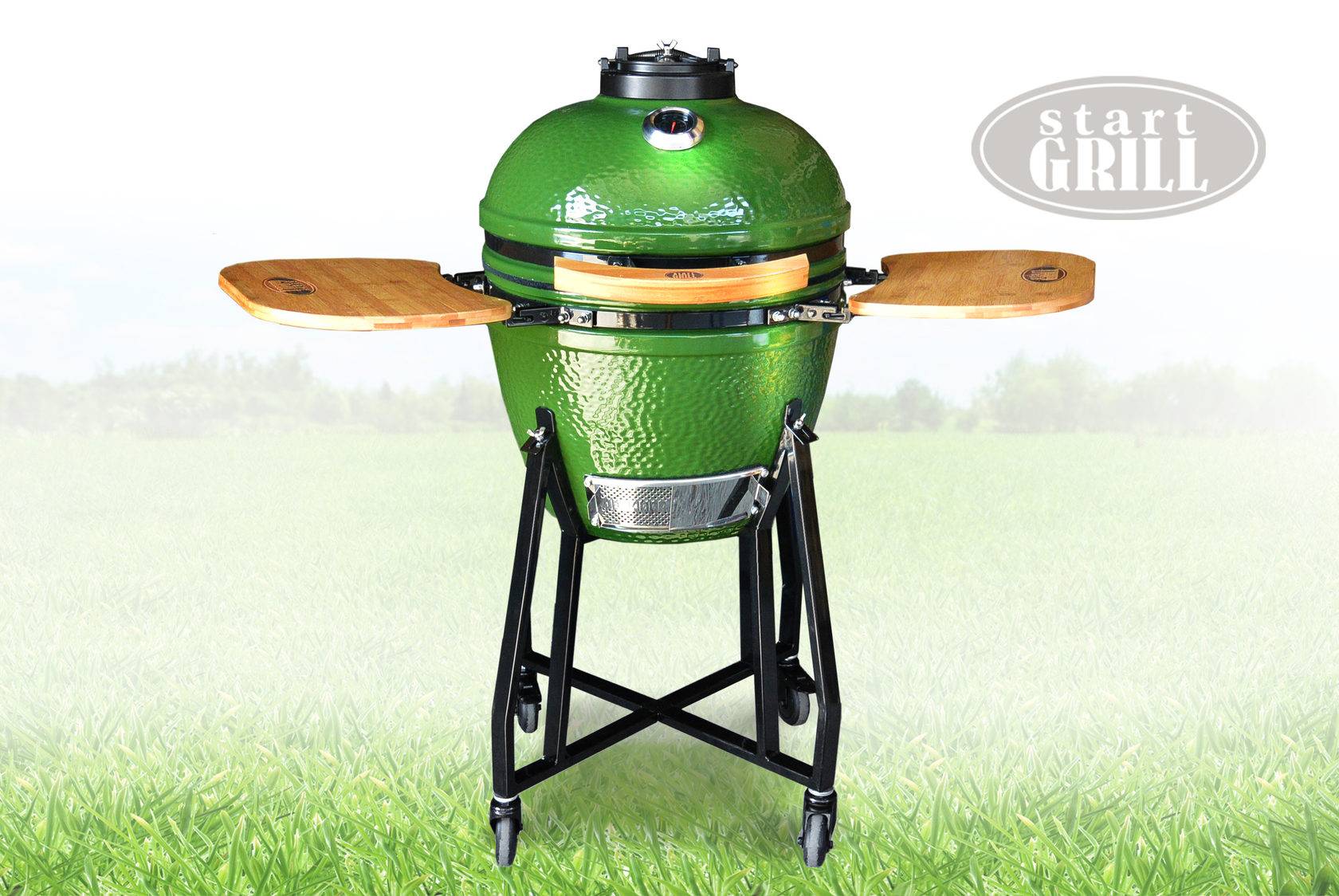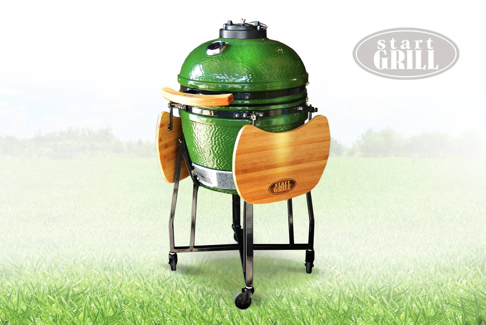 Start Grill 18 – керамический гриль, удачно сочетающие функции барбекю и мангала. Также иго часто используют в качестве тандыра, коптильни и печи для выпекания пиццы. Изделие изготавливаются из толстостенной керамики, решетки – из нержавеющей стали, поэтому они не боятся коррозии, выдерживают температуру до 1000 градусов, долгие годы сохраняют первоначальный внешний вид.