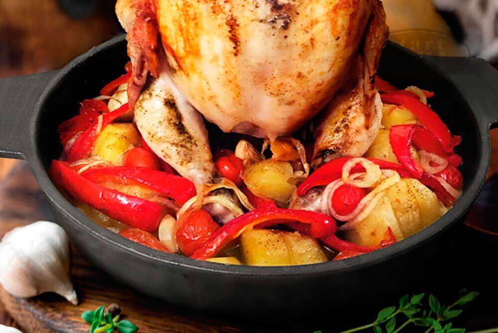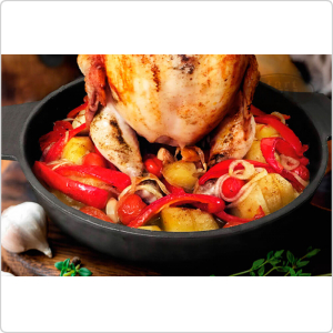 Приготовить вкуснейшую курочку очень просто, вино, вода или маринад заливается в стакан и на него насаживается курица. Обложите курицу овощами для получения вкуснейшего гарнира пропитанного соком курицы. А само мясо будет сочным и вкусным.