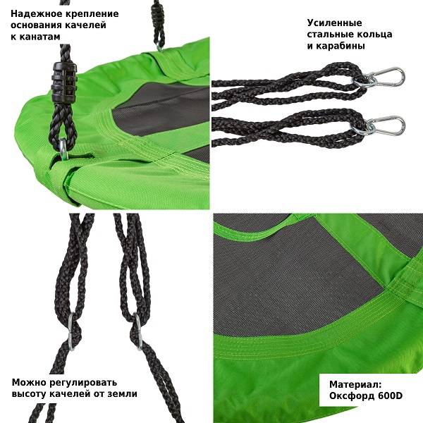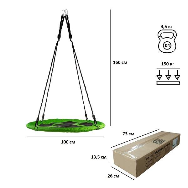Оптимальный диаметр качели 100 см позволяет использовать изделие дома и на улице.