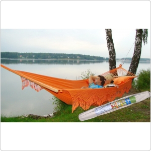 Роскошный бразильский гамак "Tulip" предназначен для всей семьи. В нем легко могут расположиться и родители во время отдыха в саду или на летней веранде загородного дома, к ним запросто могут присоединиться дети.
