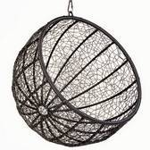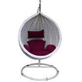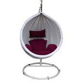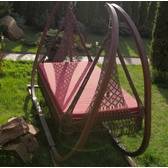 Подвесное кресла с деревянным каркасом в виде полусферы и подушками