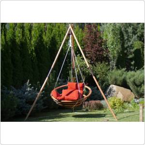 Оригинальная модель кресла качели с подушками МАЙЯ надежно крепится на изящную в виде пирамиды стойку деревянный каркас МАЙЯ. Она выдерживает значительный вес - до 150 кг.