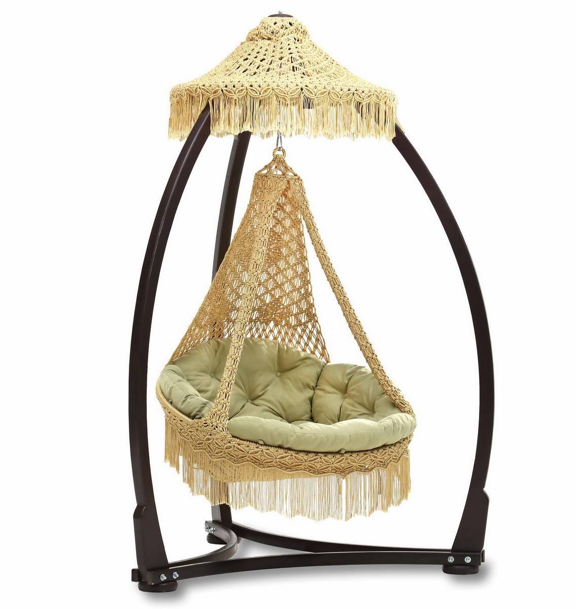 Прочная деревянная конструкция каркаса обеспечивает надежное крепление кресла-гамака и позволяет Вам наслаждаться отдыхом с максимальным комфортом. К тому же этот каркас можно разместить не только дома, но и в саду, и на лужайке - он отлично выдерживает уличную эксплуатацию. Внешний вид каркаса с гамаком – легкий и изящный. Но, при кажущейся его легкости, эта конструкция вполне надежна и устойчива.