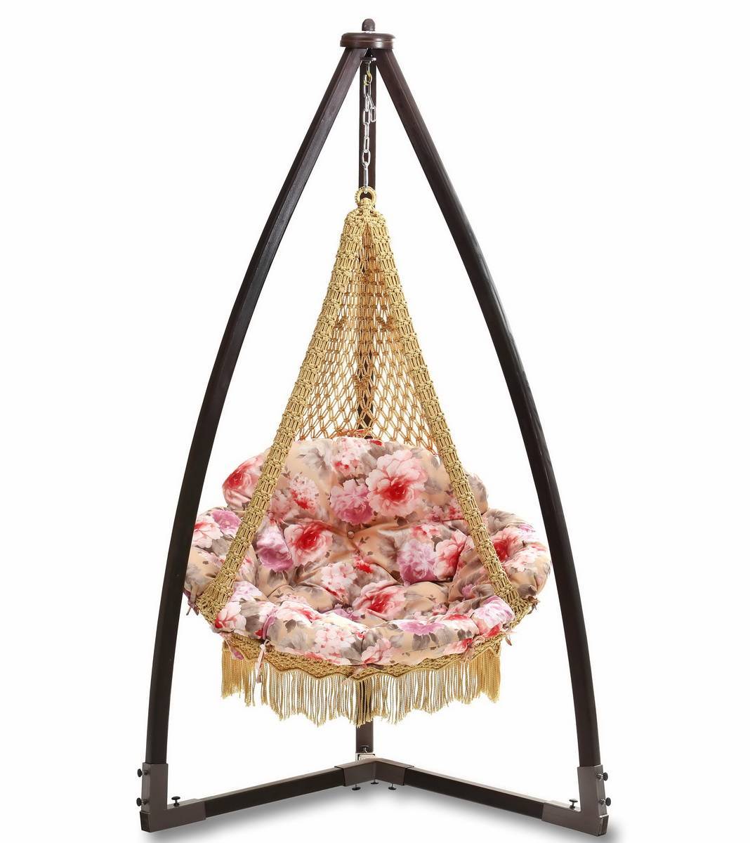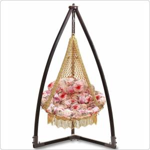 Прочная деревянная конструкция каркаса обеспечивает надежное крепление кресла-гамака и позволяет Вам наслаждаться отдыхом с максимальным комфортом. К тому же этот каркас можно разместить не только дома, но и в саду, и на лужайке - он отлично выдерживает уличную эксплуатацию. Внешний вид каркаса с гамаком – легкий и изящный. Но, при кажущейся его легкости, эта конструкция вполне надежна и устойчива.