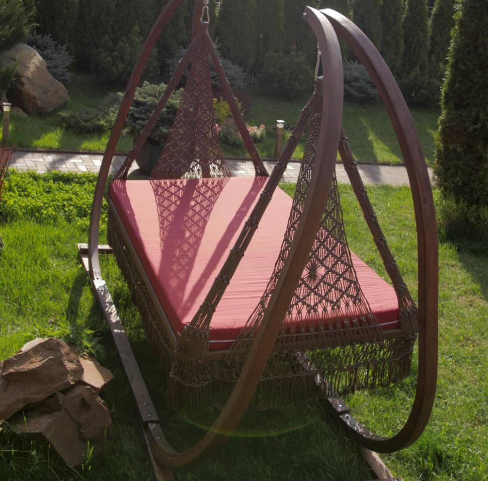 Подвесной гамак качели МАРРАКЕШ для отдыха на даче или в загородном доме. Укомплектован комфортным двухместным матрасом. С его помощью Вы сможете приятно отдохнуть на свежем воздухе, позагорать и даже выспаться.