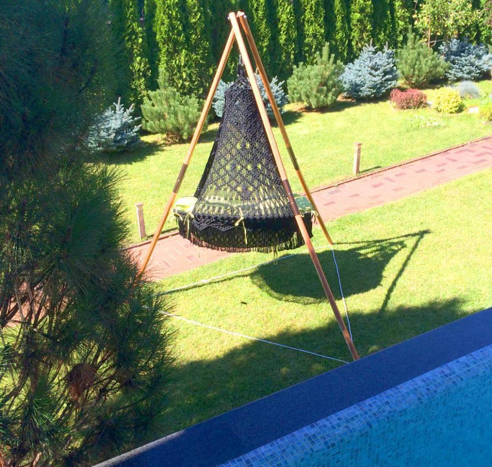Подвесное кресло Cartagena установлено на деревянный каркас Майя