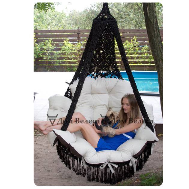Cartagena выдерживает вес двоих человек, в комплект к креслу-гамаку входят несколько просто роскошных подушек.