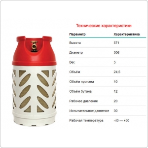 Баллон Ragasco Lpg 24,5 л изготавливается из стекловолоконной нити, покрытой эпоксидной смолой. Для удобства эксплуатации баллон помещен в кожух из полимерного материала.