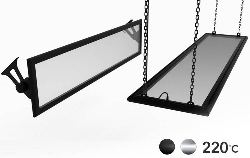В работе обогревателей ThermoUp использован принцип комбинированной теплоотдачи: вместе с тепловым излучением обогреватель способен создавать конвекционный поток, распространяющий теплый воздух по заданной площади. Излучающая поверхность выполнена из закаленного термоупрочненного стекла и выдерживает резкие температурные колебания, а также случайные механические воздействия и нагрузки.