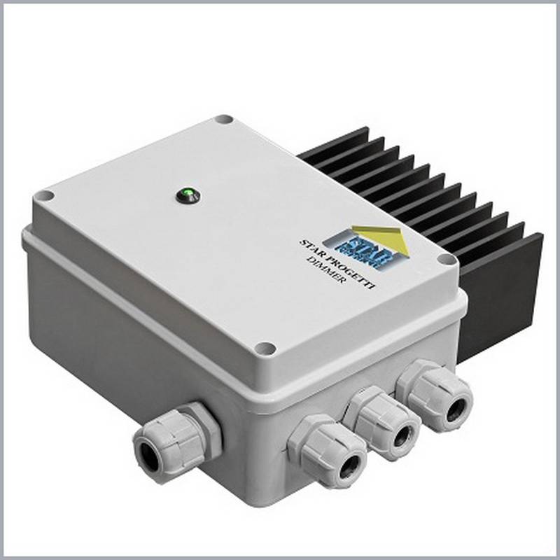 Регулятор мощности Heliosa Star 6 (6 кВт) полностью влаго- и пылезащищенный с классом IP54. Модель снабжена пультом управления 3 предустановленными каналами, радиус действия до 25 м. Имеется радиатор для отвода тепла. В устройство подводятся кабели от обогревателей. Варианты подключения: 3 х 2 кВт, 1 х 6 кВт, 1 х 4 кВт + 1 х 2 кВт.