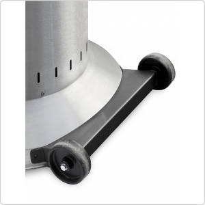 Обогреватель имеет следующие габаритные размеры: диаметр рефлектора - 88 см, высота: 230 см, диаметр столика 60 см. Он способен излучать тепло в диаметре 10 метров.