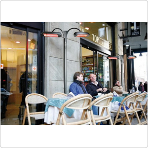 Инфракрасный обогреватель HELIOSA 993 – уличный. Он состоит из двух обогревателей на гибкой ножке и мобильной подставки. Предназначен для установки снаружи помещений и в условиях открытых пространств.