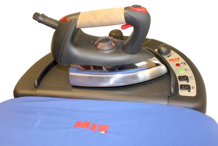 Утюг гладильной системы MIE CLASSICO PLUS - профессиональный. Толстая подошва и пробковая ручка обеспечивают комфорт и высокий результат. На утюге системы MIE CLASSICO PLUS есть две кнопки подачи пара. Одна расположена сверху ручки утюга, другая – под ручкой. При работе эта копка оказывается под указательным пальцем правой руки, что очень удобно для обеспечения непрерывной подачи пара.