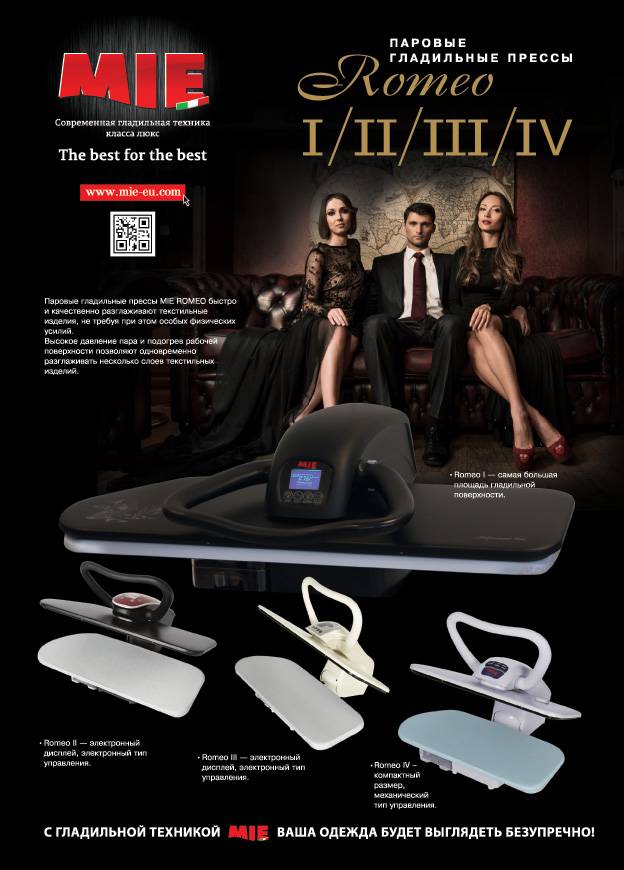 Компания MIE занимается производством и разработкой паровой гладильной и уборочной техники класса люкс. В своих продуктах MIE реализует новейшие идеи в области изобретения паровой техники. Только лучшие и самые надежные разработки, объединенные с модным дизайном идут в разработку техники MIE.