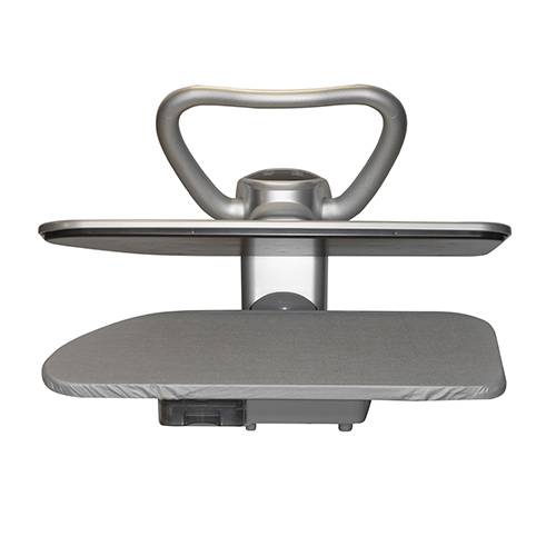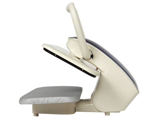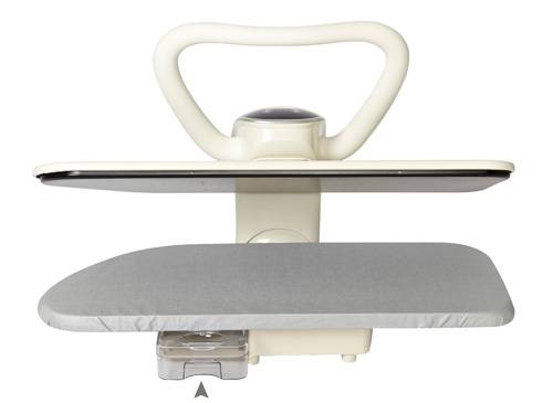 Широкий угол открывания гладильной поверхности пресса. Позволяет без труда размещать на нем крупные вещи и складывать одежду после глажения без риска обжечься.