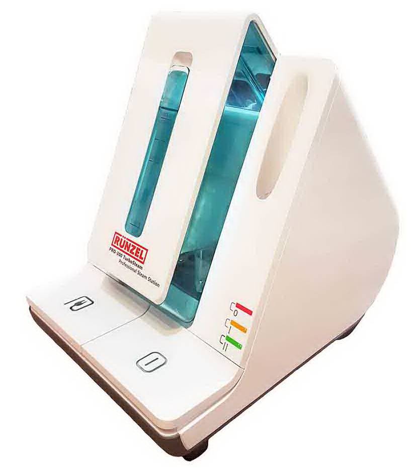 Runzel PRO-300 TURBOSTEAM – превосходный отпариватель для одежды, текстильных изделий, покрывал, тюлей, штор. Объем бака рассчитан на 2200 мл воды, а это отличный показатель для мощного отпаривателя. Его достаточно для беспрерывного отпаривания вещей в течение 120 минут. Система распознает, если в резервуаре отсутствует вода и автоматически отключит отпариватель. Аппарат оснащен сигнализацией об окончании воды, что делает его инновационным и эффективнее своих предшественников.