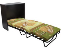 Раскладушки с тумбой новое, очень интересное предложение. Благодаря особому механизму сложения, раскладушка выглядит как тумба, которую с удобством можно передвигать на место хранения или установки посредством колесиков. Эту тумбу можно использовать как столик или декоративную мебель. Каркас раскладушки весьма прочен, так как оборудован четырьмя ножками. Основание раскладушки - деревянные ламели - обеспечивают повышенный комфорт во время отдыха.