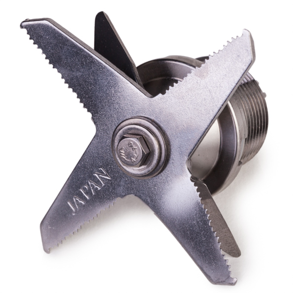 Если сердце блендера - мощный мотор, то руки - ножи. Четыре зазубренных лезвия (+2 дополнительных) – залог наилучшего измельчения, ведущего к сохранению питательных веществ из растительных продуктов. Огромный опыт работы показал, что именно эти ножи из лучшей японской нержавеющей стали являются самыми эффективными для установки в высокомощный блендер.
