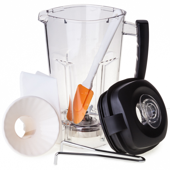 Четыре зазубренных лезвия – это залог наилучшего измельчения, ведущего к сохранению питательных веществ из растительных продуктов. Огромный опыт работы показал, что именно эти ножи из лучшей японской нержавеющей стали являются самыми эффективными для установки в высокомощный блендер. Конечно, ни один профессиональный аппарат не может обойтись без особой крышки с отверстием под толкатель – это практично, безопасно и очень удобно.