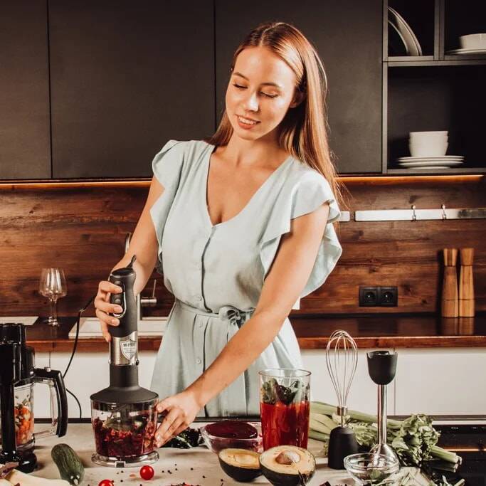 Наслаждайтесь нежными крем-супами, освежающими смузи, натуральными домашними соусами, готовьте домашний фарш из мяса и рыбы.