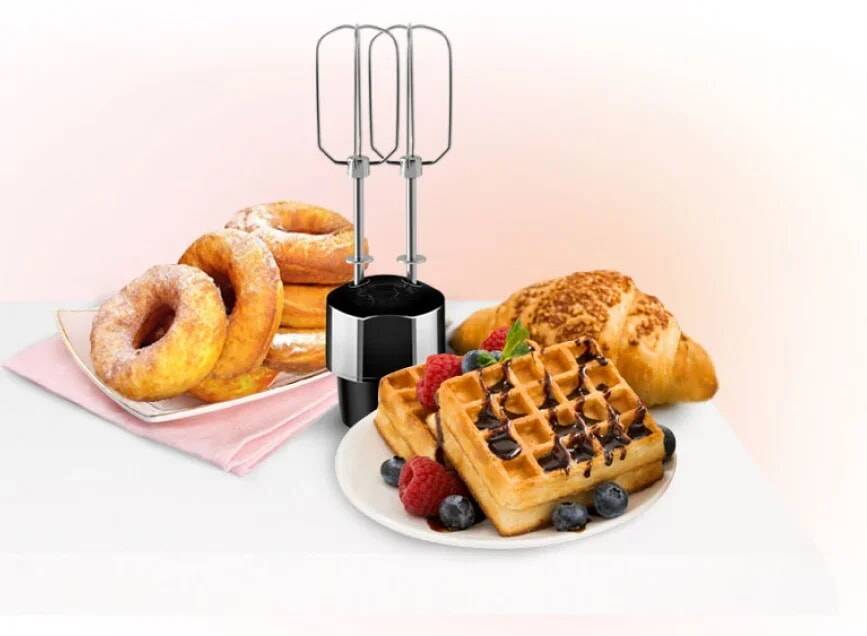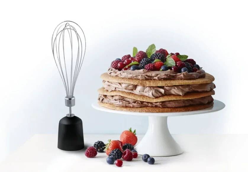 Взбивайте воздушные крема с использованием удобного венчика и замешивайте различные виды теста с помощью погружного миксера.
