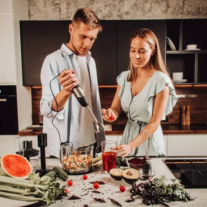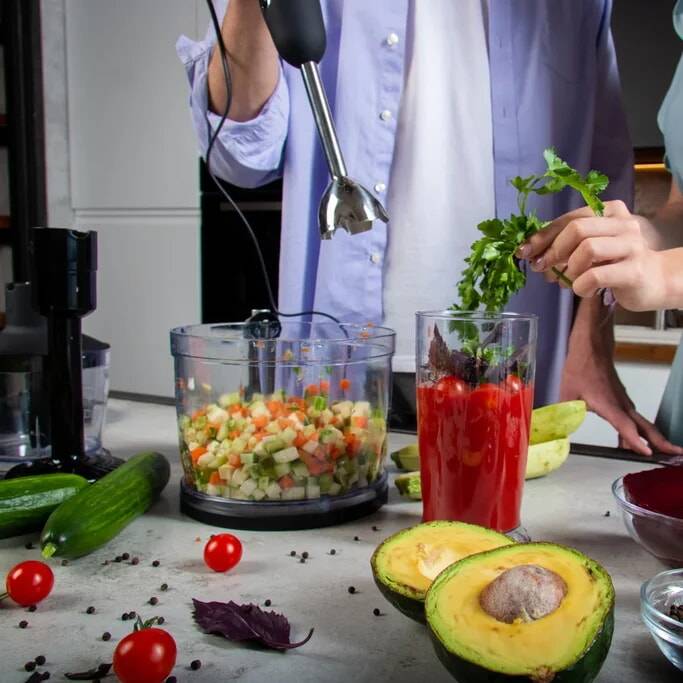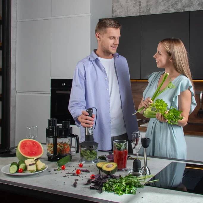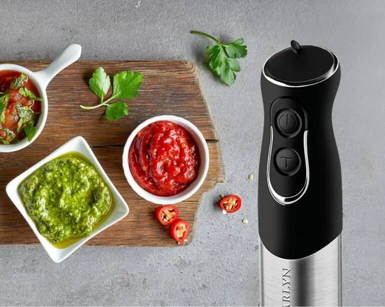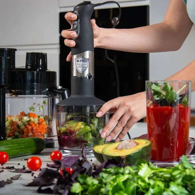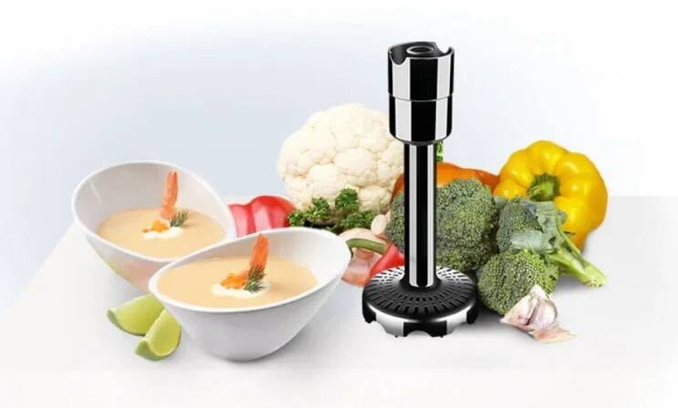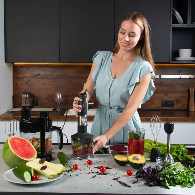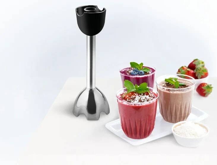 Удобный погружной блендер с ножами острой заточки мастерски справится с измельчением мягких и твердых продуктов для ваших любимых блюд и напитков.
