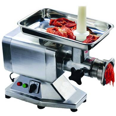 Оснащена стандартной мясорубочной системой, измельчающей мясо один раз за один проход. Система охлаждения двигателя обеспечивает непрерывную работу. Функция реверса позволяет в случае необходимости разблокировать шнек, не прибегая к разборке и очистке оборудования.