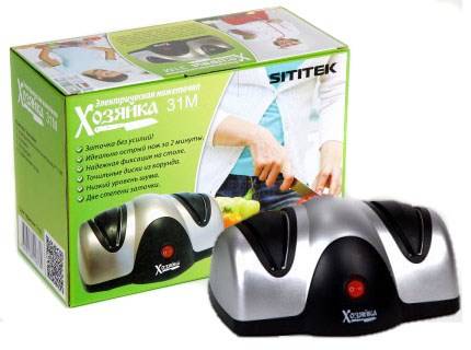 - Доступная цена. Все преимущества ножеточки SITITEK "Хозяйка 31М" имеют разумное соотношение с ее ценой, что не может не радовать покупателей. Купив прибор один раз, Вы навсегда избавитесь от расходов, связанных с обращением к профессионалам.
