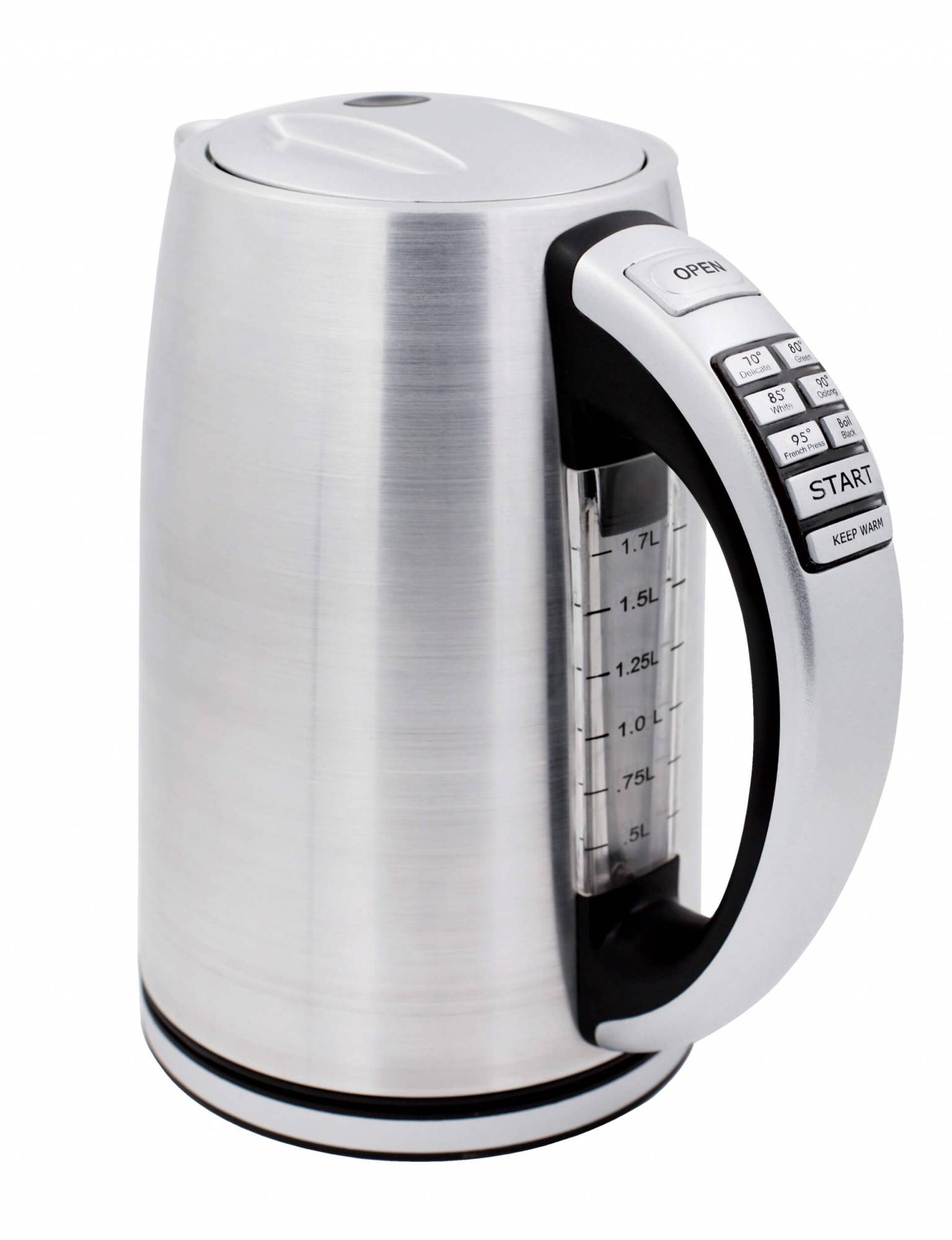 Электрический чайник Gemlux GL-EK-9217WF имеет элегантный минималистичный дизайн и электронное управление с удобными кнопками, расположенными прямо на ручке. Вместительная колба объемом 1,7 л со съемным сетчатым фильтром идеально подходит для семьи из трех-четырех человек. Устройство изготовлено из прочной, экологичной и безопасной для здоровья нержавеющей стали, термоизолированная ручка – из черной пластмассы с накладкой из нерж.стали.