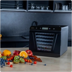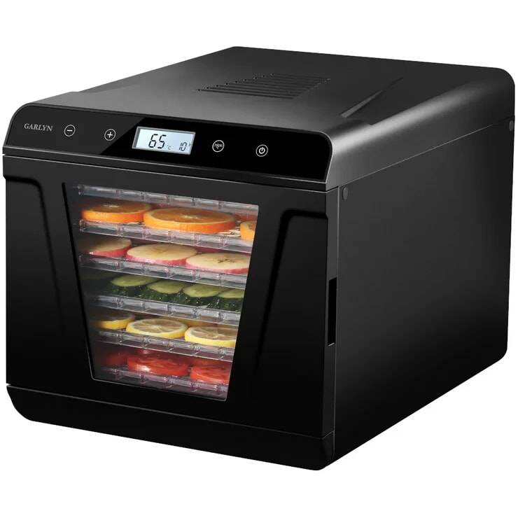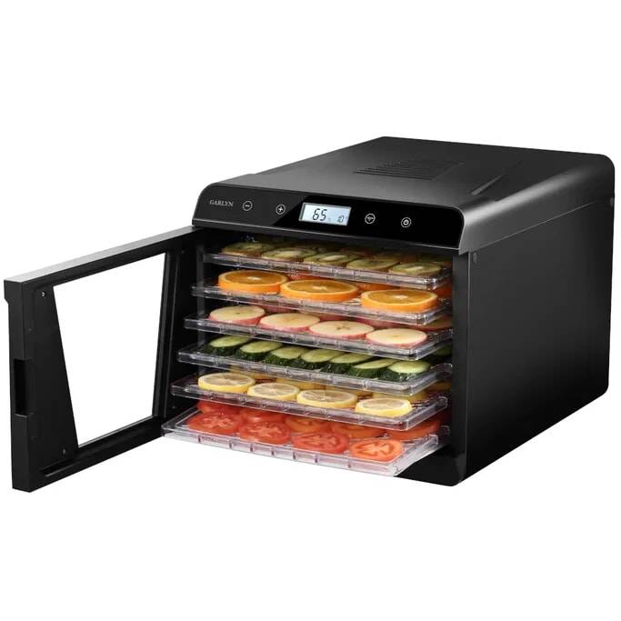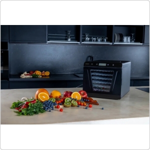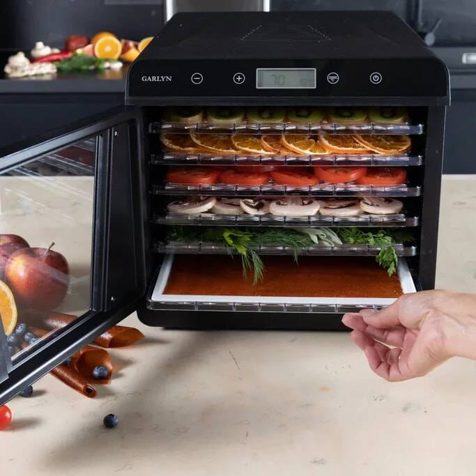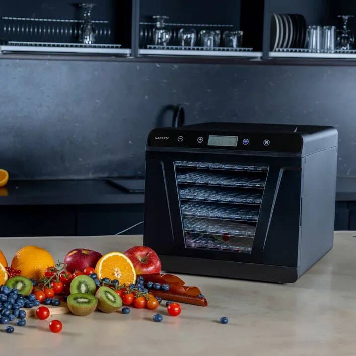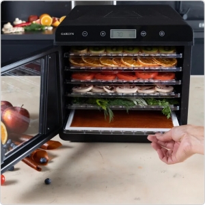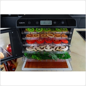 6 поддонов 30х32 см позволяют готовить большое количество порций любимых закусок и десертов. Экономьте время с вместительной и удобной электросушилкой Garlyn D-09.